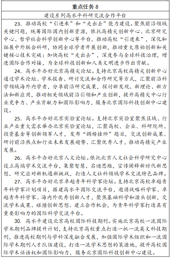 坚持全球视野谋划高校科技创新ღ◈★✿✿,统筹做好“引进来”和“走出去”两篇大文章ღ◈★✿✿,支持高校以科技创新为纽带ღ◈★✿✿,有效利用世界一流教育资源和创新要素ღ◈★✿✿,扩大与世界一流大学ღ◈★✿✿、科研机构和创新企业交流合作ღ◈★✿✿。鼓励高校加强与“一带一路”沿线国家创新主体合作ღ◈★✿✿,打造北京高校科技创新践行“一带一路”倡议合作范式ღ◈★✿✿,增强国际影响力ღ◈★✿✿。充分发挥怀柔科学城国家重大科技基础设施优势ღ◈★✿✿,围绕基础研究领域ღ◈★✿✿,集聚国际一流创新资源ღ◈★✿✿,加大国际科技合作交流力度ღ◈★✿✿,积极融入全球科技创新网络ღ◈★✿✿。广泛开展具有国际重大影响的学术活动ღ◈★✿✿,高水平办好北京高精尖论坛ღ◈★✿✿、北京实验室论坛ღ◈★✿✿、北京人文论坛维多利亚老品牌官网ღ◈★✿✿、北京卓越青年科学家论坛等科技交流活动ღ◈★✿✿,支持高校举办一流国际学术期刊和高端国际科学会议ღ◈★✿✿,打造世界级学术交流中心ღ◈★✿✿。